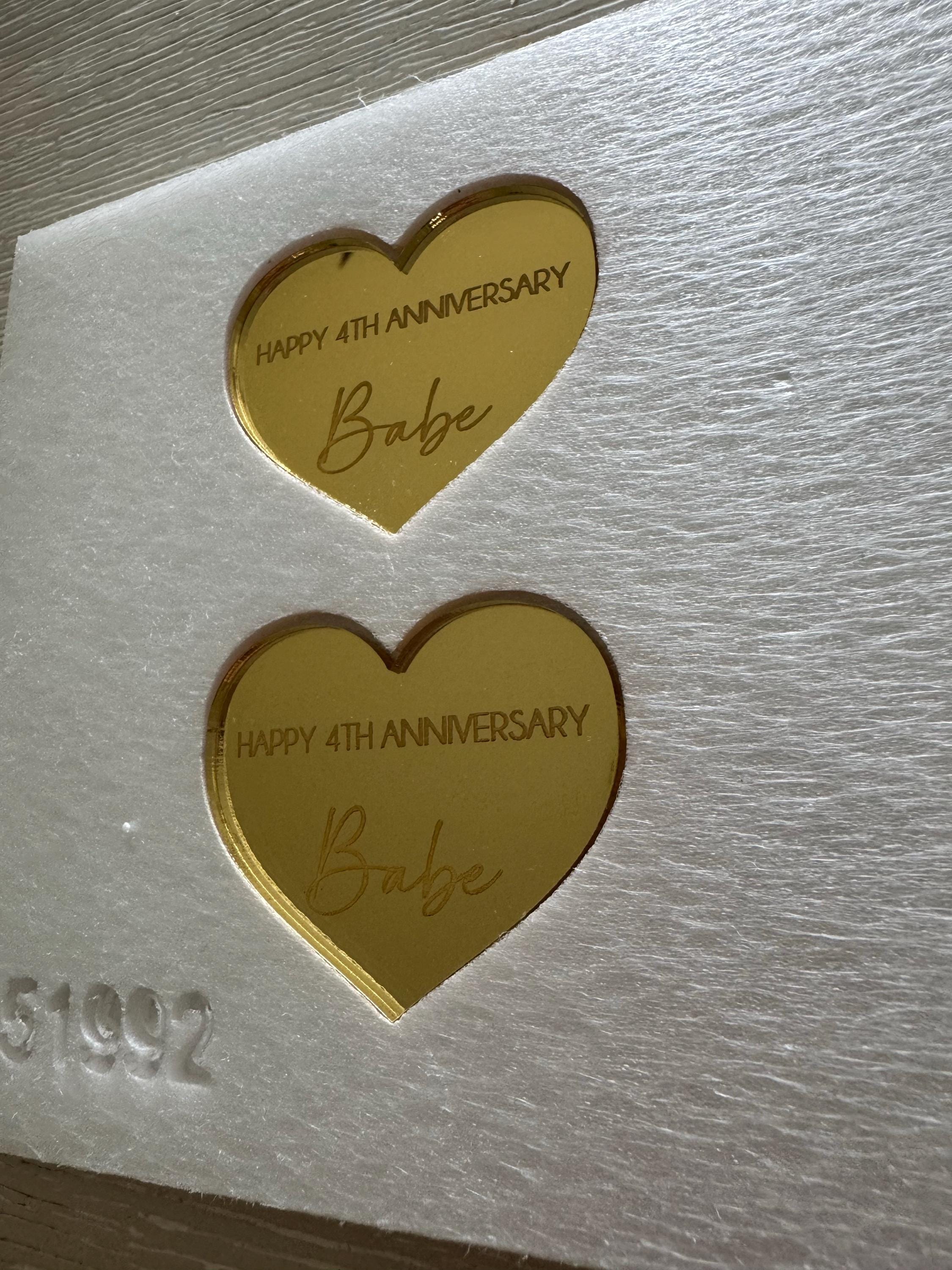 Custom engraved mirror acrylic cupcake toppers with personalized names or text.