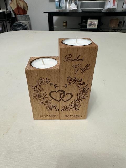 Create a warm and meaningful ambiance with this personalized wooden candle holder, engraved with custom names, initials, and a special date. A perfect gift for couples, anniversaries, weddings, housewarmings, or Valentine’s Day.