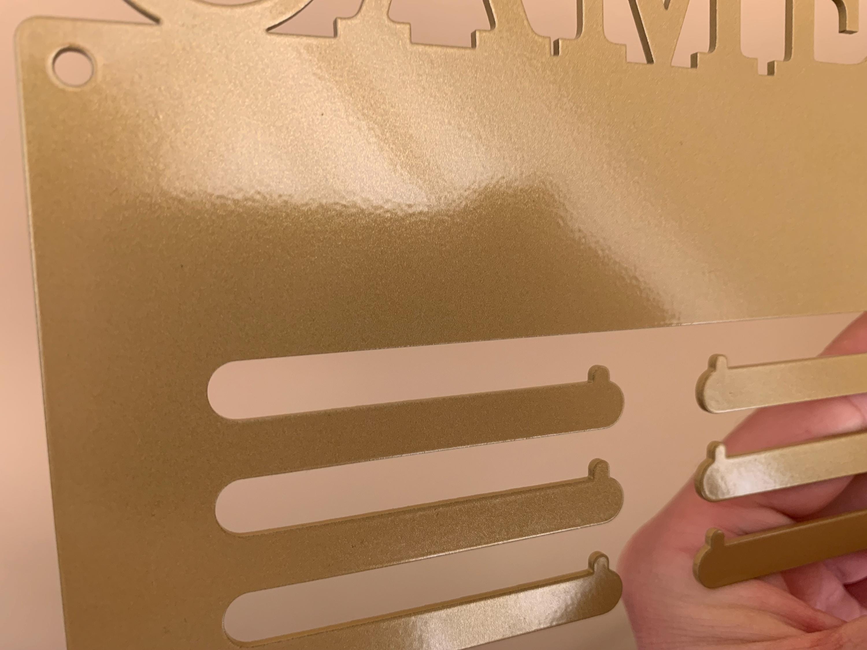 This personalized running medal holder with a custom name is the best way to display all that bling that has been collected from the championship circuit.