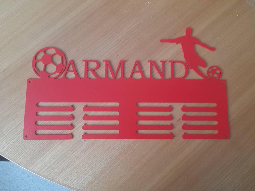 This personalized soccer medal hanger with a custom name (or any short text) is the best way to display all that bling that has been collected from the championship circuit.