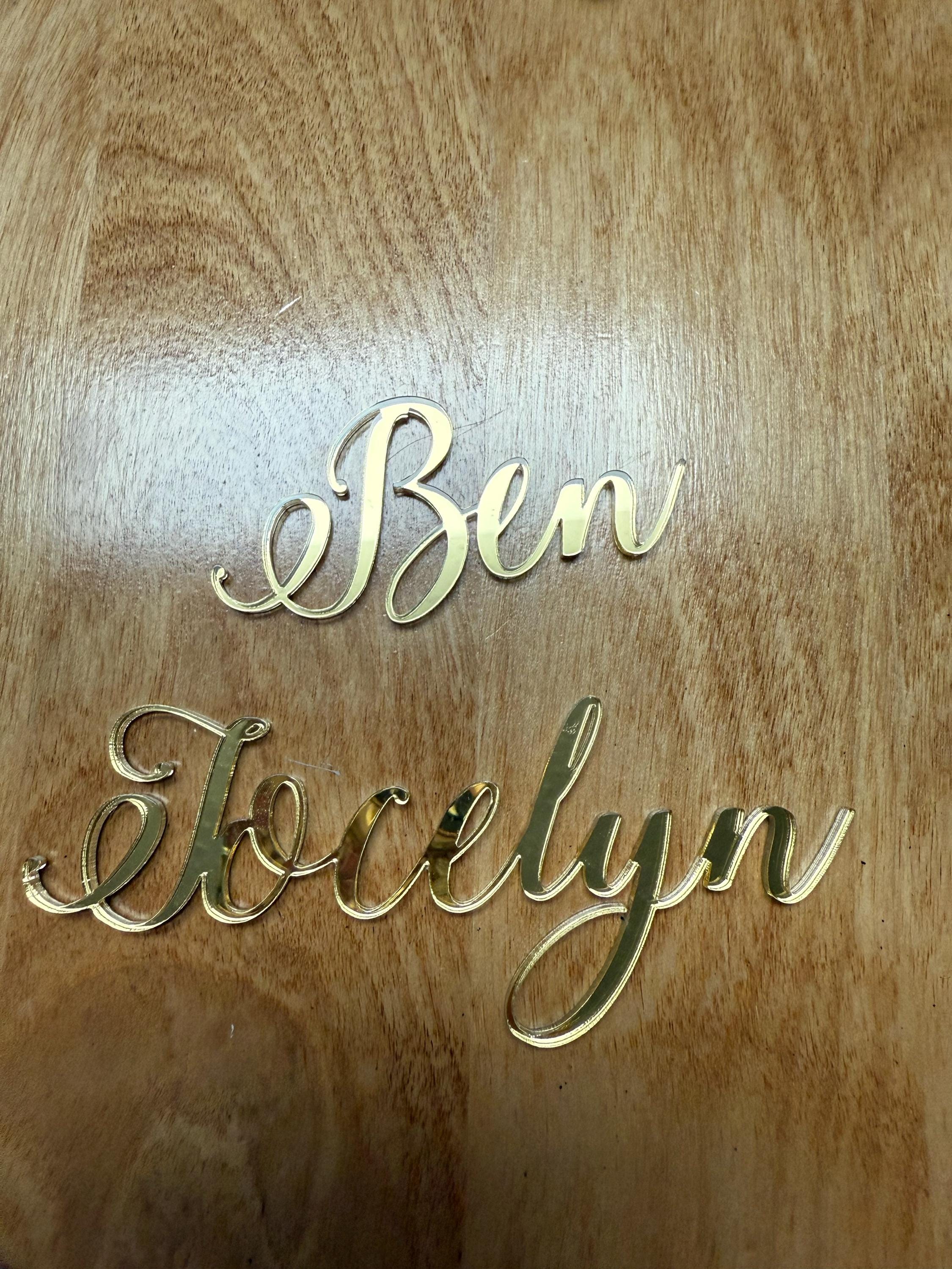 These laser-cut names make elegant and personalized wedding acrylic place settings, perfect for guest names, wedding place cards, and custom table names, adding a stylish touch to themed wedding décor.