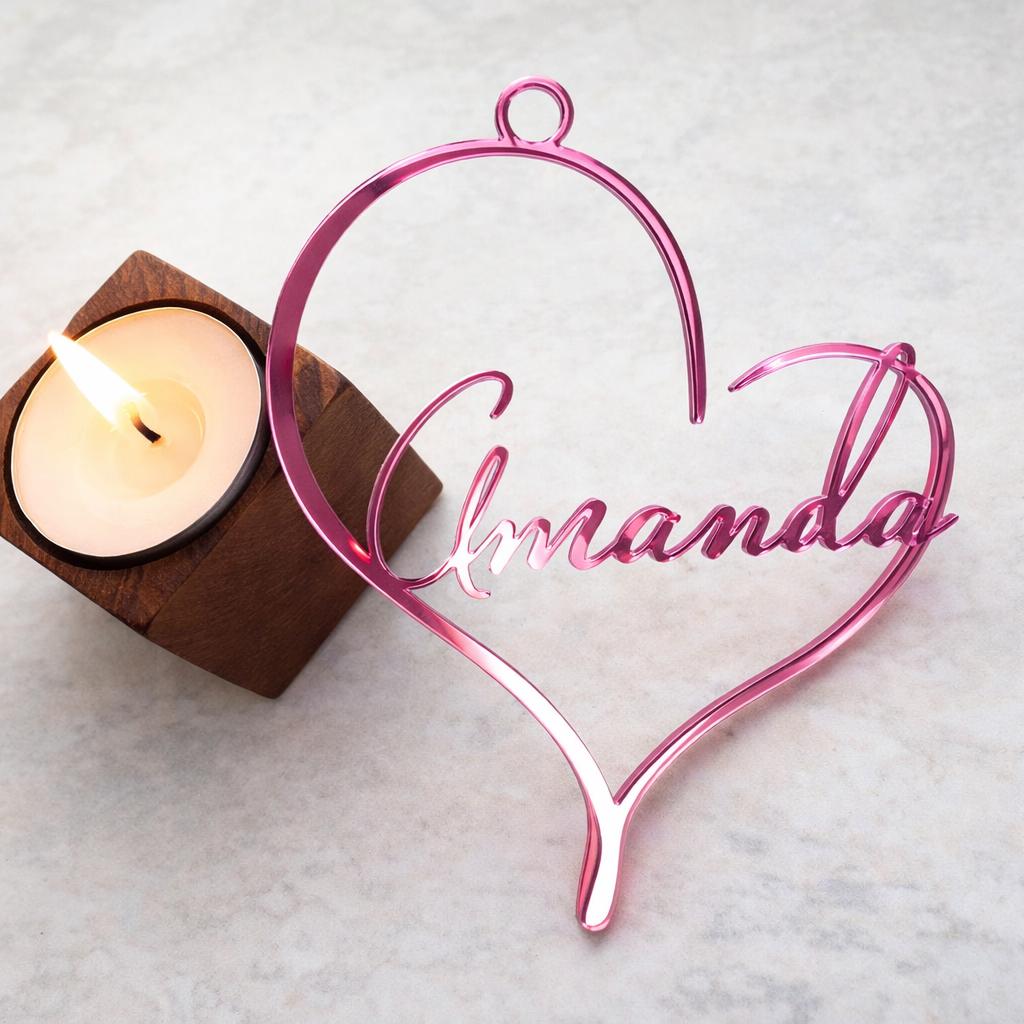 A personalized heart ornament featuring a custom name, beautifully designed as a romantic keepsake for Valentine’s Day, weddings, bridesmaids, or heartfelt home décor.