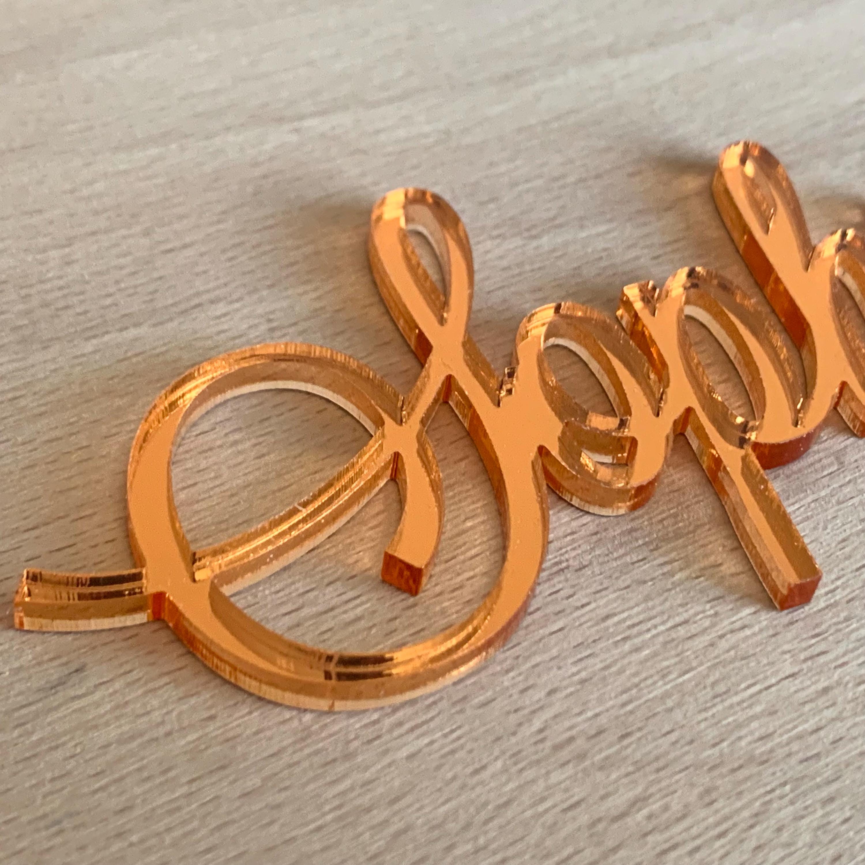 Copper mirrored personalized wedding acrylic place cards are the perfect addition to your event.