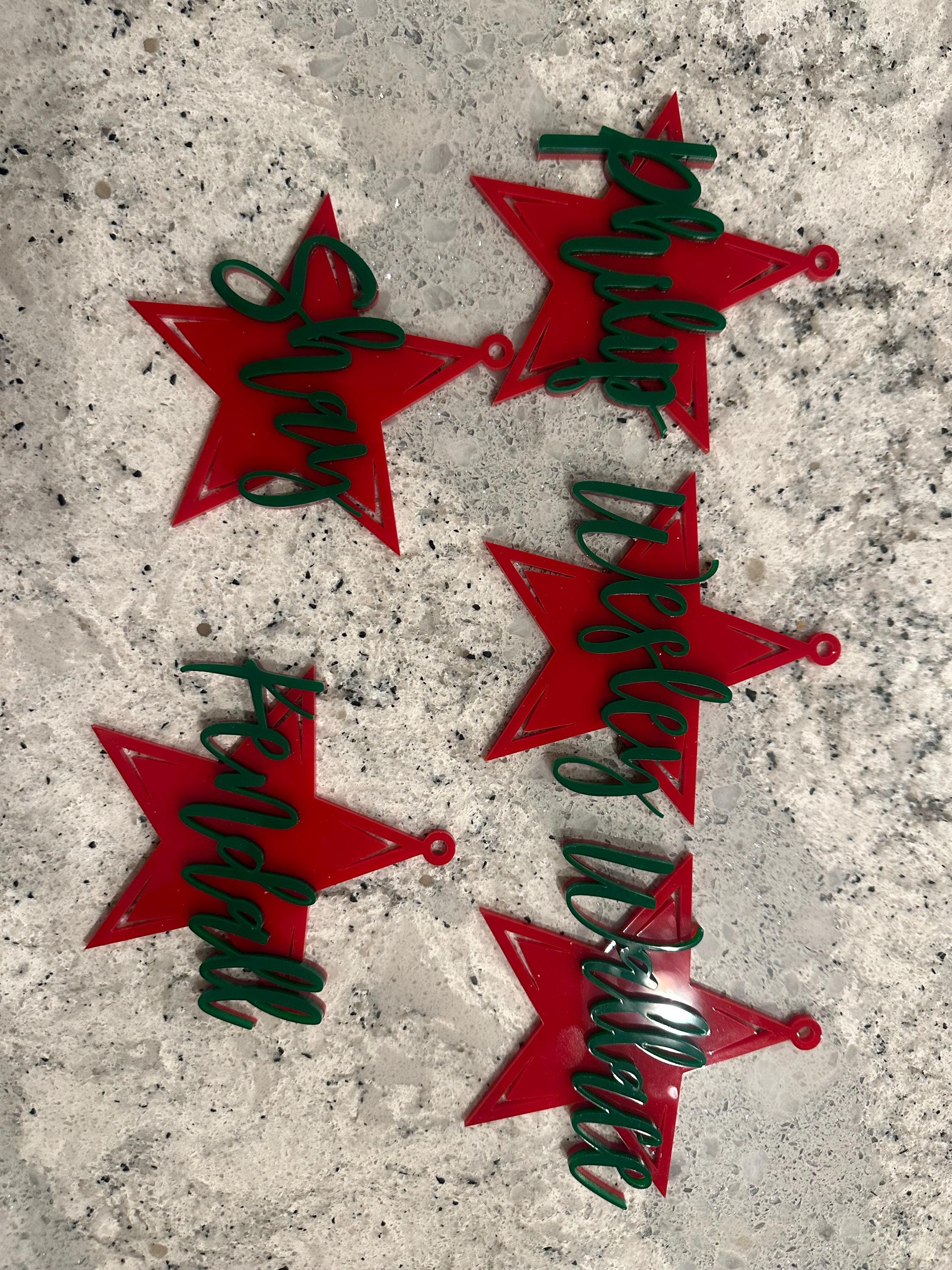 Personalized hanging stars. Custom ornament with a name. Any color.