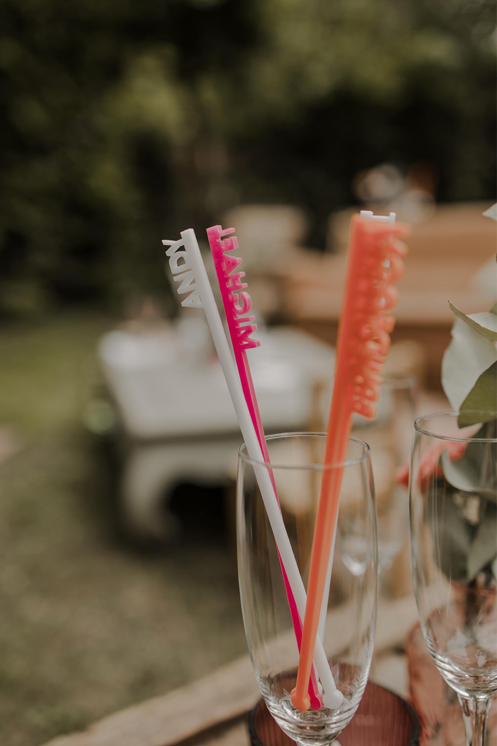 Add the perfect finishing touch to your cocktails with these elegant custom wedding drink stirrers. Designed with modern calligraphy lettering, they are perfect for weddings, cocktail parties, receptions, special celebrations, and other occasions.